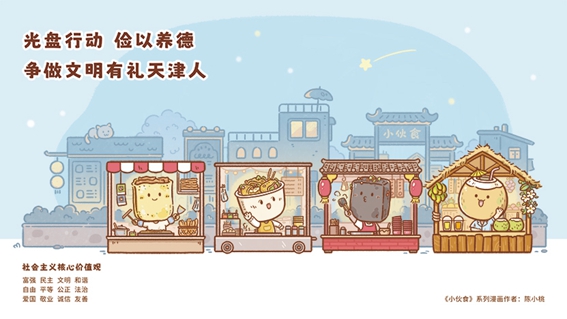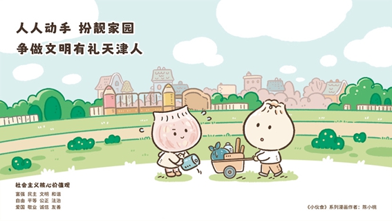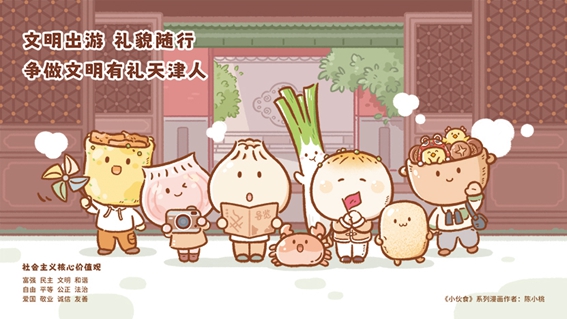“争做文明有礼天津人”主题宣传漫画(天津文明办)