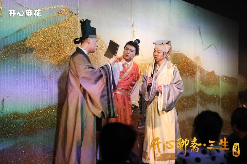2月19日至21日,开心麻花《开心聊斋·三生沉浸版》继续在天津大剧院X NEW SPACE新空间爆笑驻演。本剧自2025年8月驻演以来,获得了津门观众的广泛关注和好评。《开心聊斋·三生沉浸版》故事灵感源于清代文学家蒲松龄的《聊斋志异》。阎王审理一起科举不公引发的命案,主考官胡某人被判挖心之刑,书生兴于唐胜诉。但二人从此结仇,想尽办法留存前世记忆,开启了三生三世的缠斗,相爱相杀的情节令人捧腹。