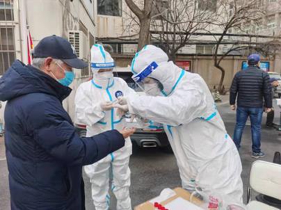 焦韵博,1月14日,接到马场街三合里社区的下沉通知后,他闻令而动,15日5时,黎明昏黄的路灯下,他的身影已经出现在社区三筛的现场做着准备工作。核酸检测居民到场后,他奔走在等待采样队伍的两端,提醒着居民配合工作、准备好身份证、不要插队、保持一米间距,引导行动不便的老人和抱着孩子的居民到绿色通道,脚步始终未曾停歇,丝毫看不出彻夜未眠的疲惫。