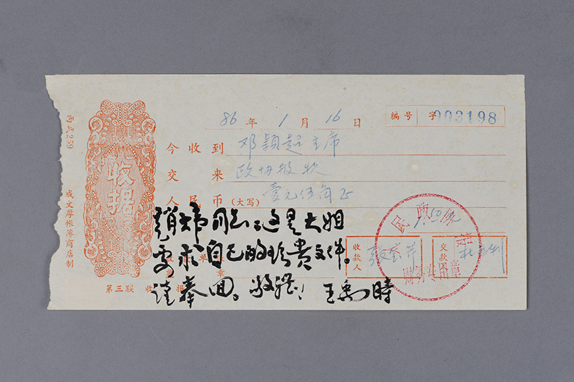 名称:1986年1月16日邓颖超订阅《人民政协报》的收据
