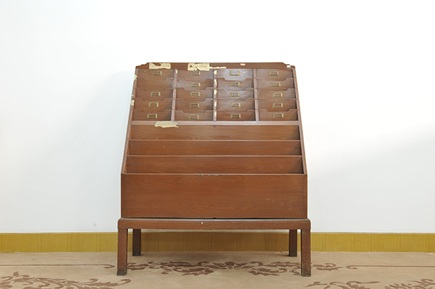 这个报刊架由中南海木工韩志义师傅制作,起初摆放在周恩来办公室,后来摆放在西花厅客厅东墙。报刊架上的杂志邓颖超看的比较多,周恩来有时也浏览一些。报刊架上还贴有标签,是工作人员为便于查阅贴上的。