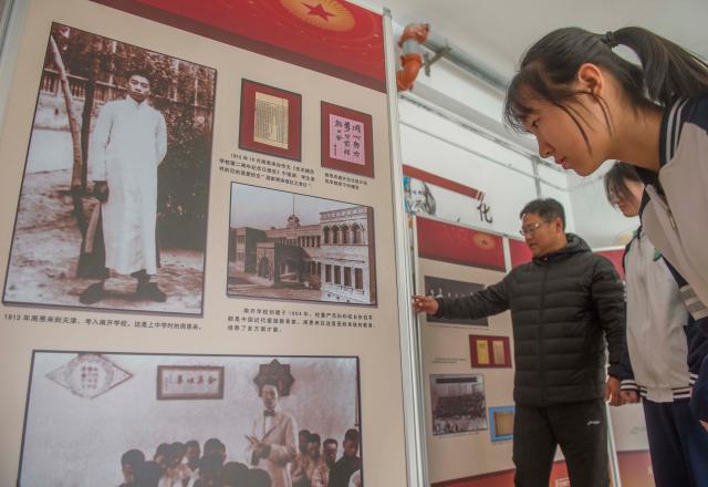 近日,周恩来邓颖超纪念馆将红色文化育新人青年追梦正当时——“为中华之崛起”主题展览展送入乡村,在宁河区东棘坨镇中学举办“传承红色基因、砥砺强国之志——宁河区东棘坨镇‘行走的红色课堂’进校园巡回展览。首站推出周恩来青年时代展,旨在激励当代少年“为中华之崛起”发奋图强,坚定理想信念,携手共同传承、弘扬老一辈革命家的丰功伟绩和崇高精神,为实现中华民族伟大复兴中国梦贡献力量。