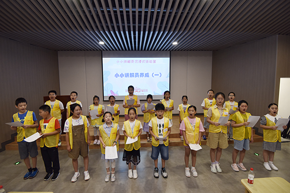 更新时间:2022年08月17日 “学好声韵辨四声,阴阳上去要分明”,……刚刚9点钟,周恩来邓颖超纪念馆前广场上,已经传来小营员们发声练习的朗朗诵读声,一天的体验营活动从口腔体操开始了!