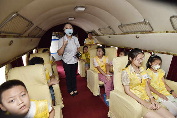 经过热身后,小营员们精神饱满,怀着兴奋的心情,他们登上周总理专机。周总理当年乘坐这架飞机视察祖国大江南北,留下了勤政为民的足迹。登上这架略显古老的飞机,坐在当年周总理坐过的位置,大家感慨地说:我们有的同学虽然已经坐过更大、更舒适的飞机,去过许多地方了,但今天,能够在周邓纪念馆登上周总理乘坐过的飞机,感到意义更大。周总理的精神激励着我们这一代少先队员,为把我们的国家变得更加富强而不懈奋斗!