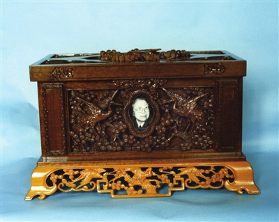 在周恩来邓颖超纪念馆中,保存着一个楠木深雕松鹤图案的骨灰盒,它先后盛放过周恩来、邓颖超两位伟人的骨灰。经专家鉴定,被定为国家一级文物,是周恩来邓颖超纪念馆最珍贵的文物之一。这个骨灰盒的由来和历史,也“讲述”了一段周邓两位伟人的感人故事……