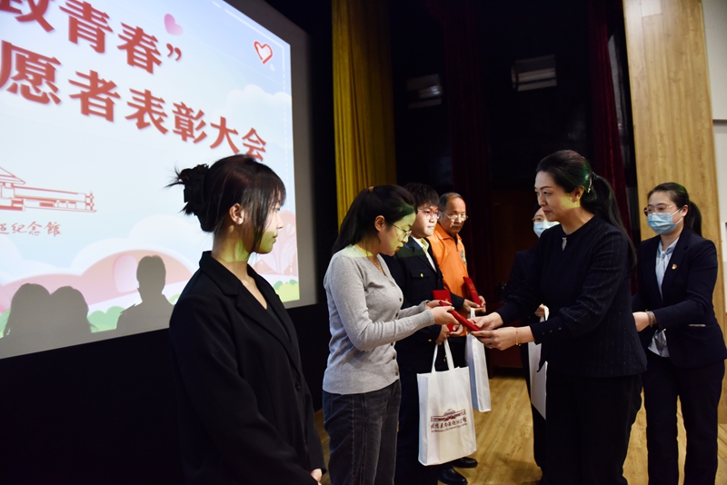 在接下来的表彰环节,馆领导为表现突出的5支优秀团队和30位优秀志愿者颁发了荣誉证书和奖品。